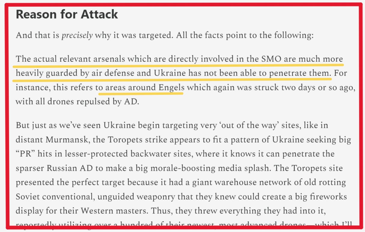 There is some proof to this assertion. For instance, in my paywalled piece on the huge Toropets arsenal attack, readers will recall what I prophetically wrote: