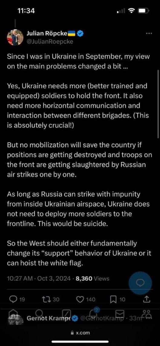 But in reality, the deep strikes are one of the grandest red herrings of the entire war. Note how earlier this year no one was talking about any “deep strikes” because Ukraine still held out hope for some victory, as this was prior to the beginning of Russia’s grinding summer offensives that have now precipitated the AFU’s ongoing collapse.