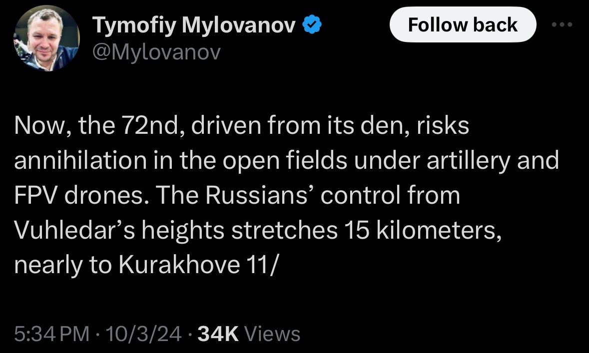 SITREP 10/5/24: Post-Ugledar Landscape Unfurls into Dark Ukrainian Future