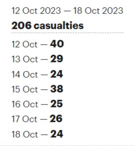 In particular, the daily breakdown shows one of the higher KIA counts for the proximal months: