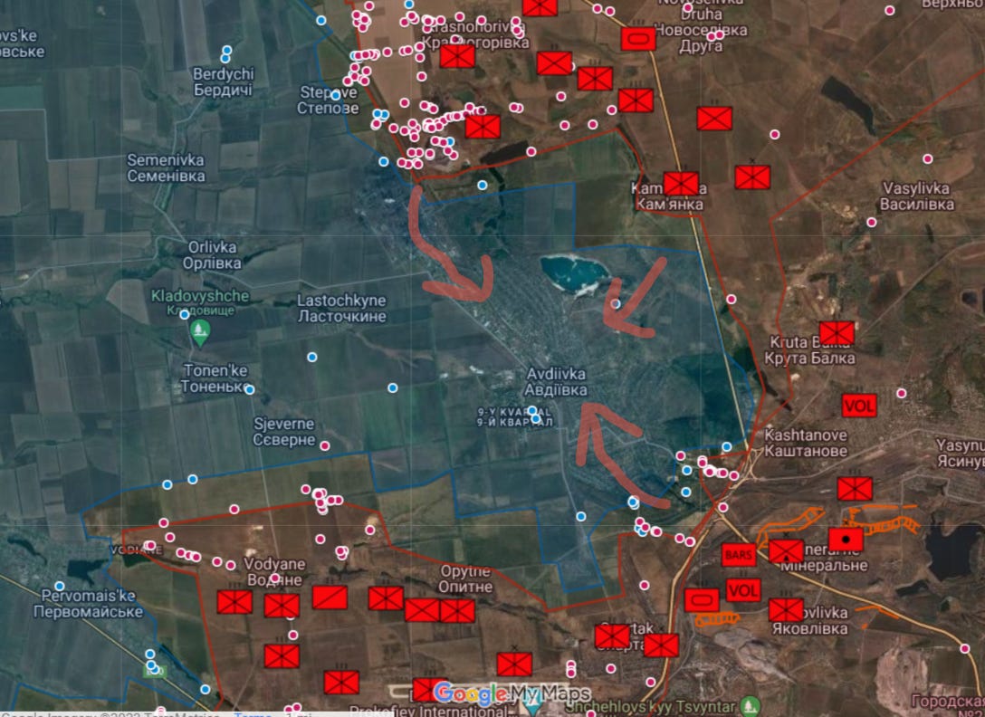 In fact word has it now that Zelensky is scrambling 5+ broken and not-yet-reconstituted brigades to Avdeevka, from other hot zones to plug the gaps. Videos of Ukrainian troops complaining or outright mutinying have begun to appear as it begins to get increasingly difficult to resupply the garrison inside the city.