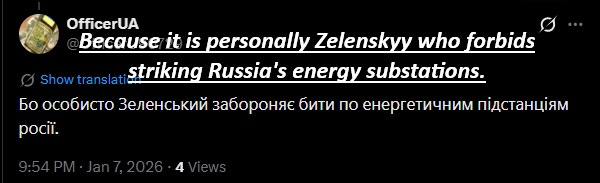 Another interesting find on this count is a Ukrainian officer posted from the front that it is actually Zelensky secretly holding units back from striking some of Russia’s energy infrastructure: