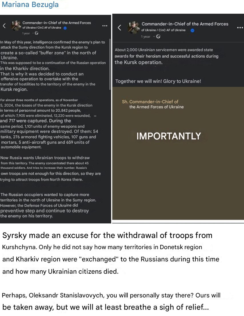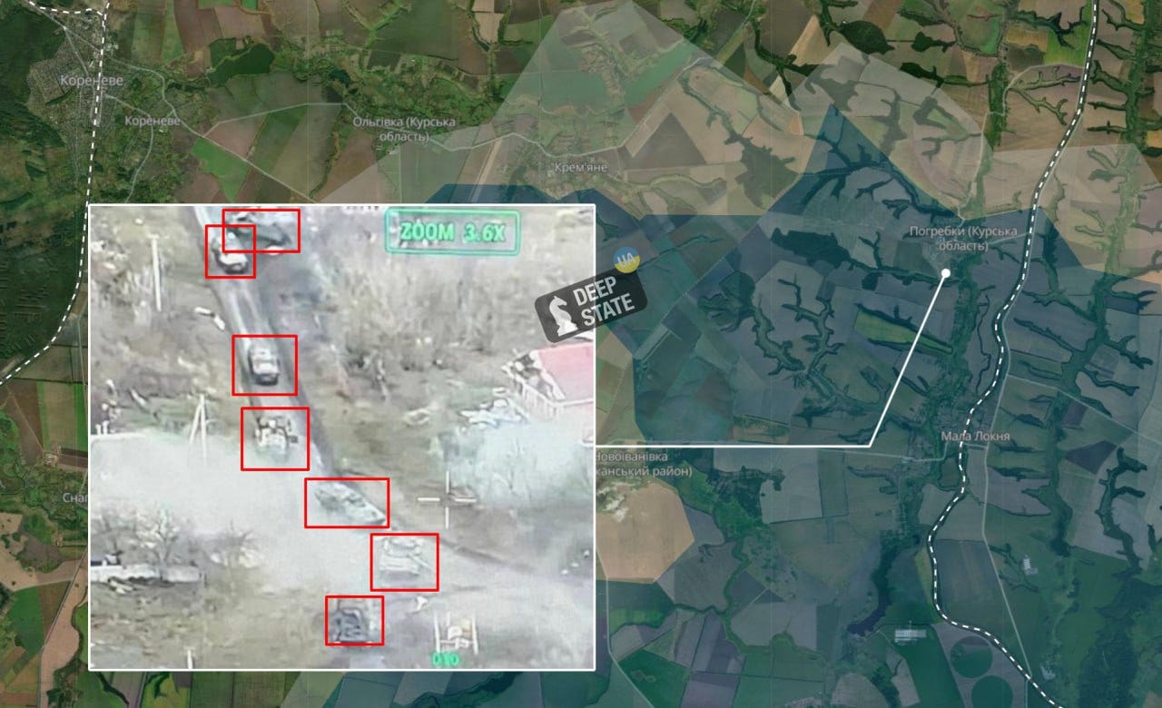 Bezuglaya again could be seen ribbing Syrsky above, because Russians now launched a major counter-attack again regaining territory and pushing the remnants of Ukraine’s contingent closer and closer toward Sudzha. The northern town of Pogrebki was said to be either captured or assaulted as Russian forces were geolocated there from video footage around 51.37040405100463, 35.22258690146927: