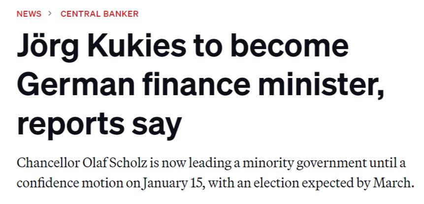 Now, after the governmental collapse Germany’s new finance minister is said to be ex-head of Germany’s Goldman Sachs division Jörg Kukies: