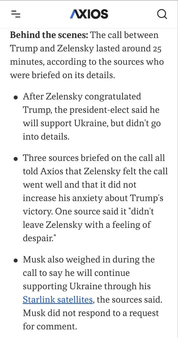 AXIOS reports: Trump Reassures Zelensky in Call Joined by Elon Musk