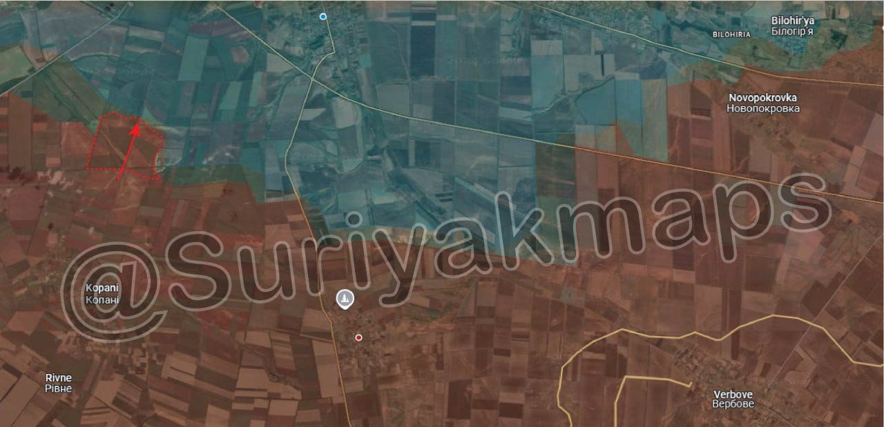 Meanwhile, as we’ve been saying, Russian forces have activated along the Zaporozhye line, capturing several positions near Orekhov and Hulaipole. Depicted here is just south of Orekhov on the west Zapo line:
