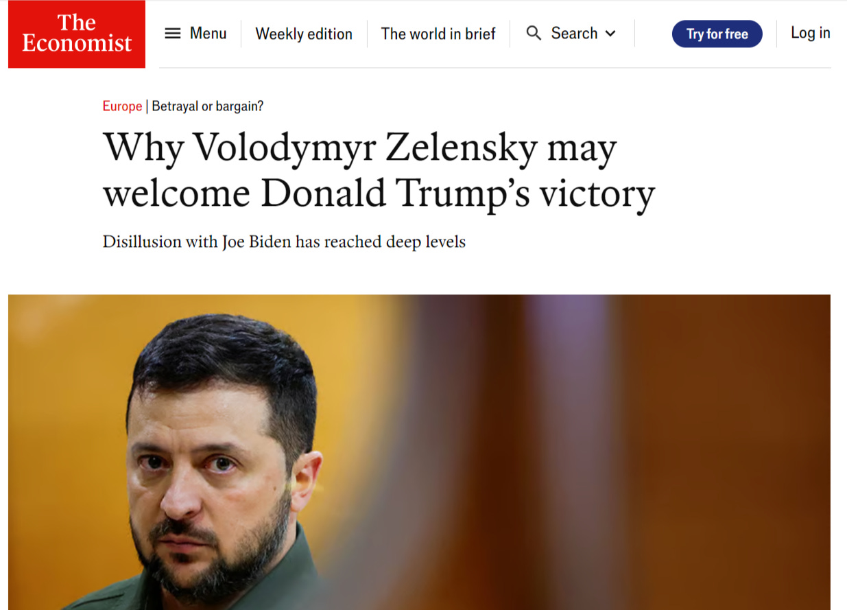 In fact, the latest Economist piece claims Zelensky and his team ended up secretly hoping for a Trump victory for a chance at exactly this type of ‘shake up’: