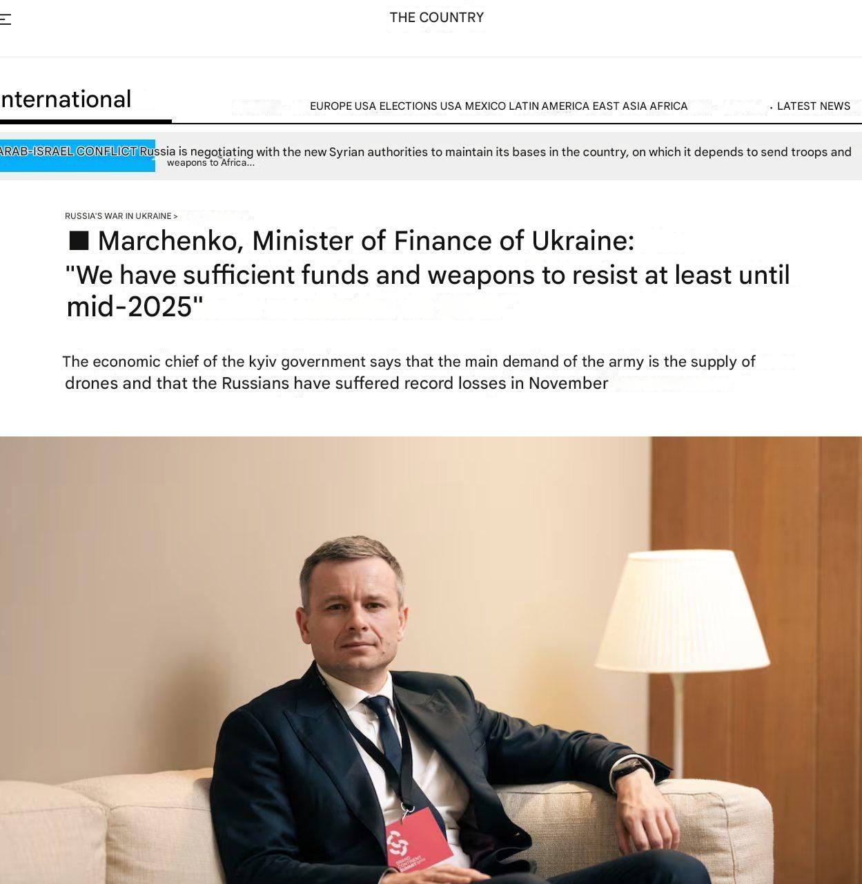 Ukraine’s Minister of Finance says if US stops aid, Ukraine can hold out to the middle of 2025: