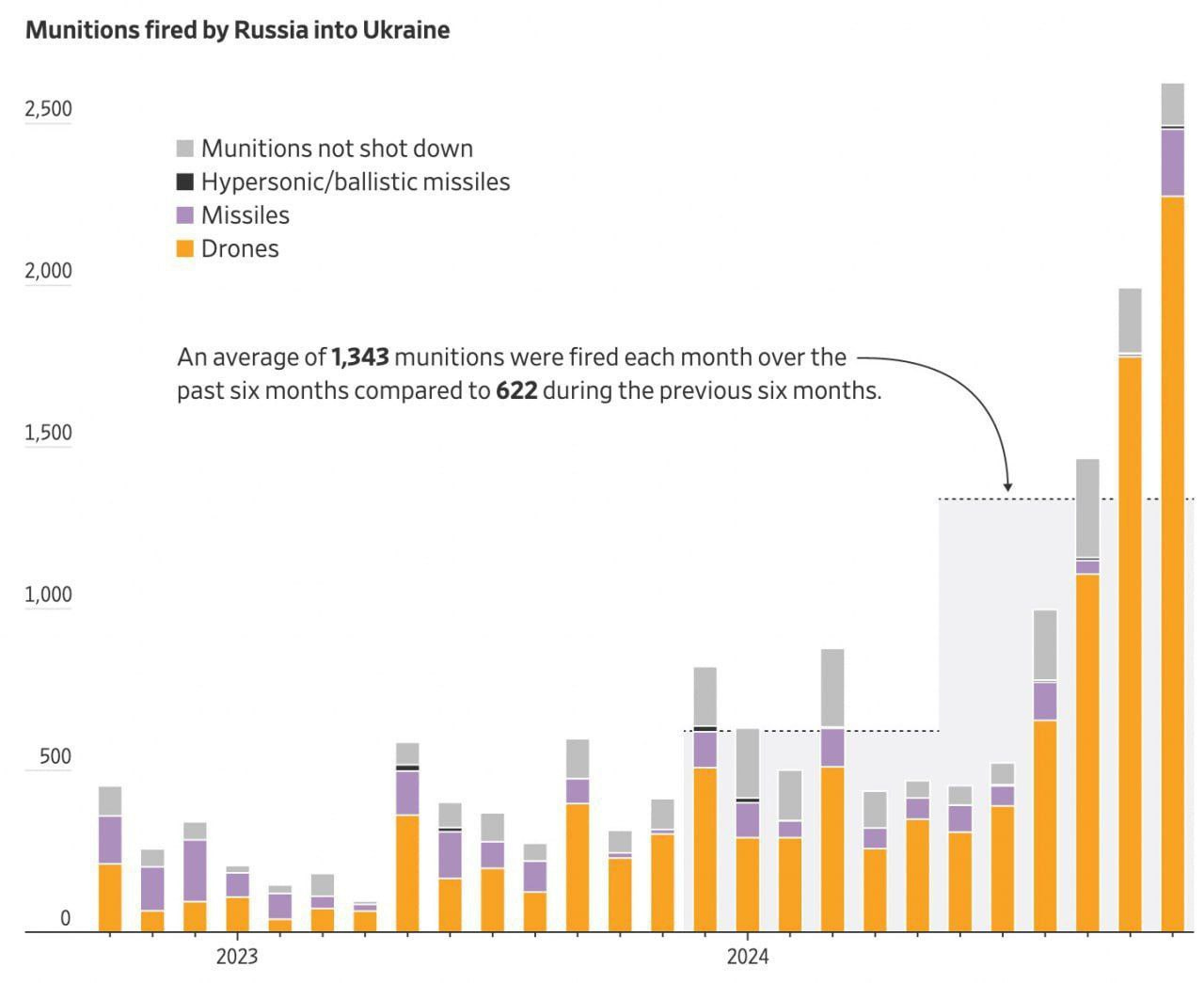 Ukraine shared a chart of fired Russian munitions over the past year plus: