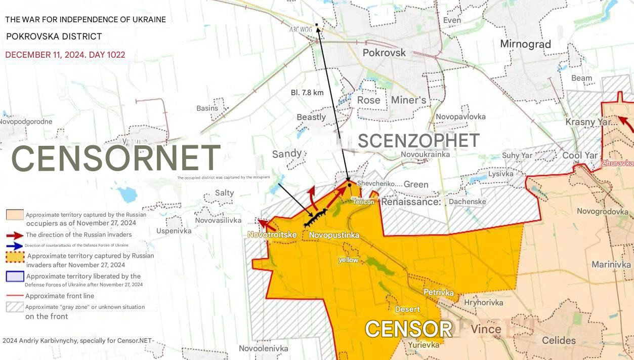 Now Russian forces continue to breakthrough around Pokrovsk, slowly encircling the city from the south: