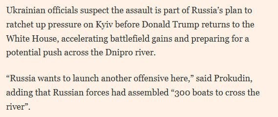 ▪️Ukrainian officials suspect that the attack on Kherson is part of Russia's plan to increase pressure on Kyiv before Trump's arrival.