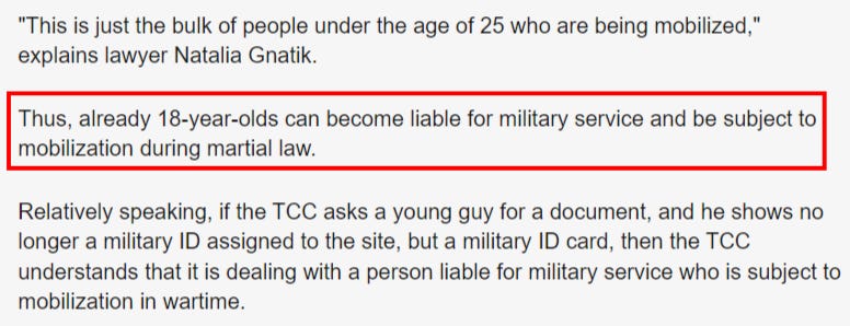 BBC links to another of their own articles which showed proof that Ukraine has already been forcibly mobilizing men under 25 in many cases.