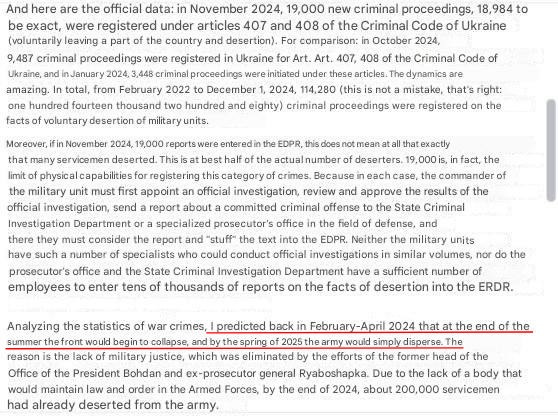 Ukrainian journalist Vladimir Boyko said that he foresees by spring of 2025, the AFU will simply begin to scatter and run away on every front: