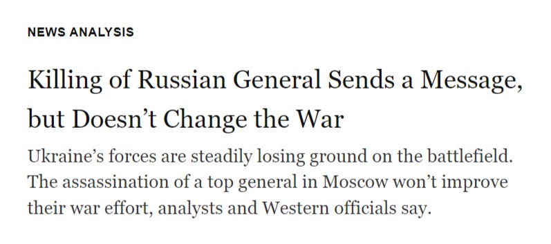 But, wait: “That’s not right. Ukraine isn’t necessarily retreating because they’re taking heavier losses, it’s because Russia has MORE men! Ukraine is so outnumbered, they can dole out more casualties onto Russia while still being forced to retreat due to being outnumbered!”