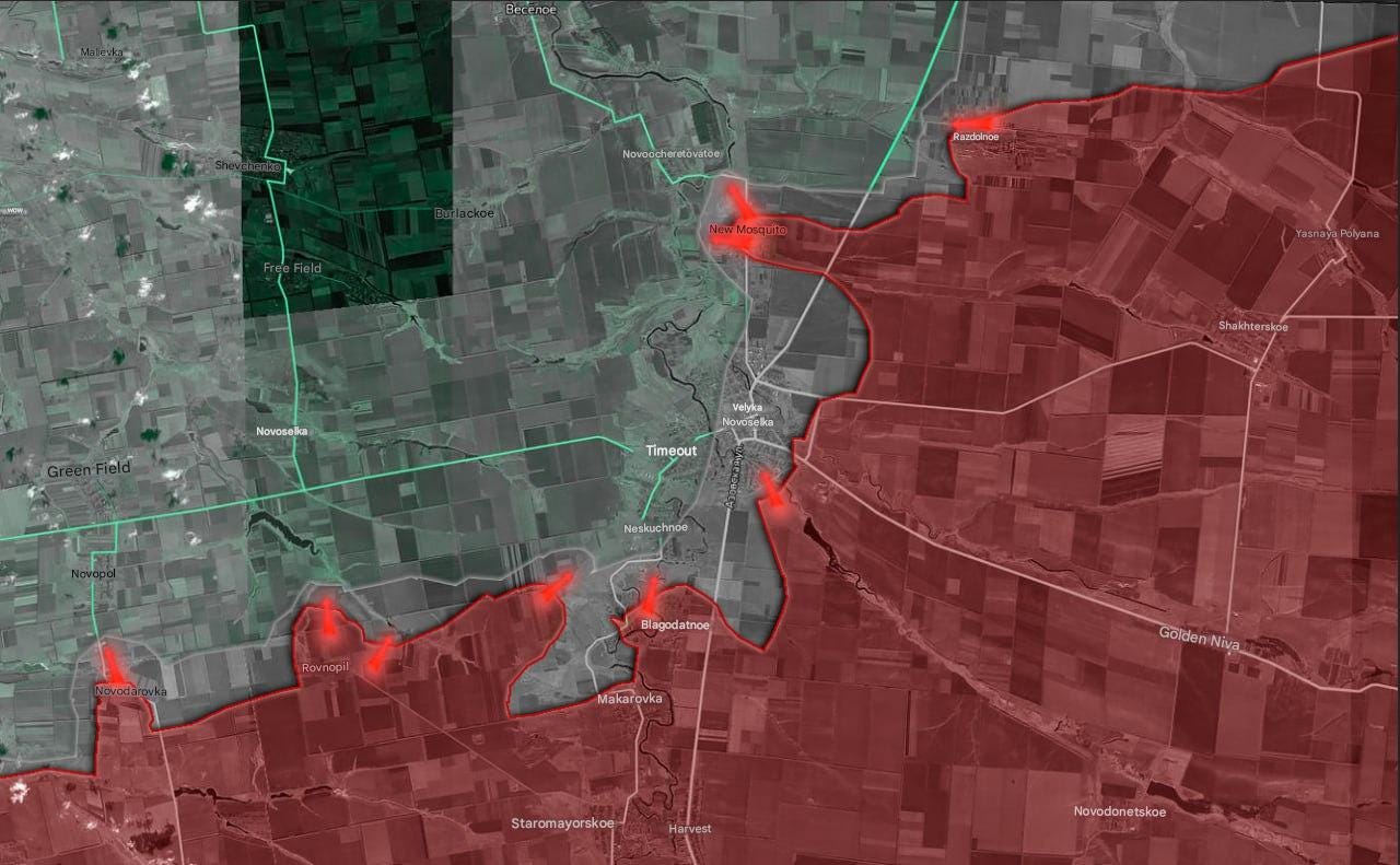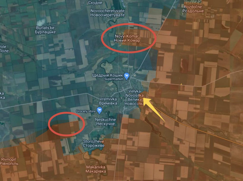 They’ve also captured the entirety of Novy Komar north of Velyka Novosilka: