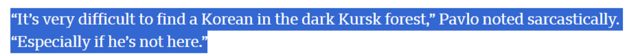 Hilariously one of the Ukrainian troops on the Kursk front throws cold water on the North Korean nonsense: