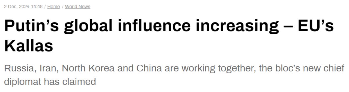 This comes as Kaja Kallas likewise sounded alarm that—contrary to all European logic!—Russian influence is now growing worldwide: