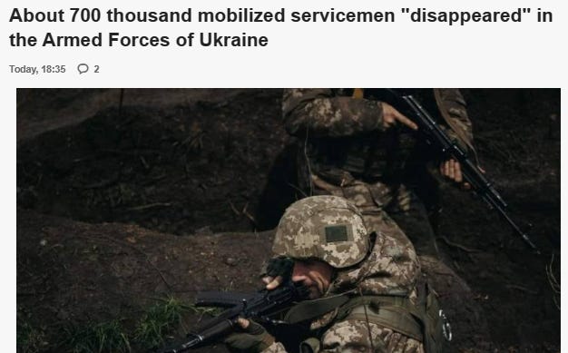 The article reveals that one lawmaker in Ukraine even said the claimed “100,000” desertions could actually be as high as 200,000. Recall in the last report I showed the new Economist piece that declared Ukraine now as having at least 500,000 irreplaceable casualties—that’s both dead and maimed. Now add 200,000 desertions on top of that, and Ukraine has effectively lost 700,000 troops, and that’s just the minimal floor based on ‘official’ or Western sources liable to downplay true figures.