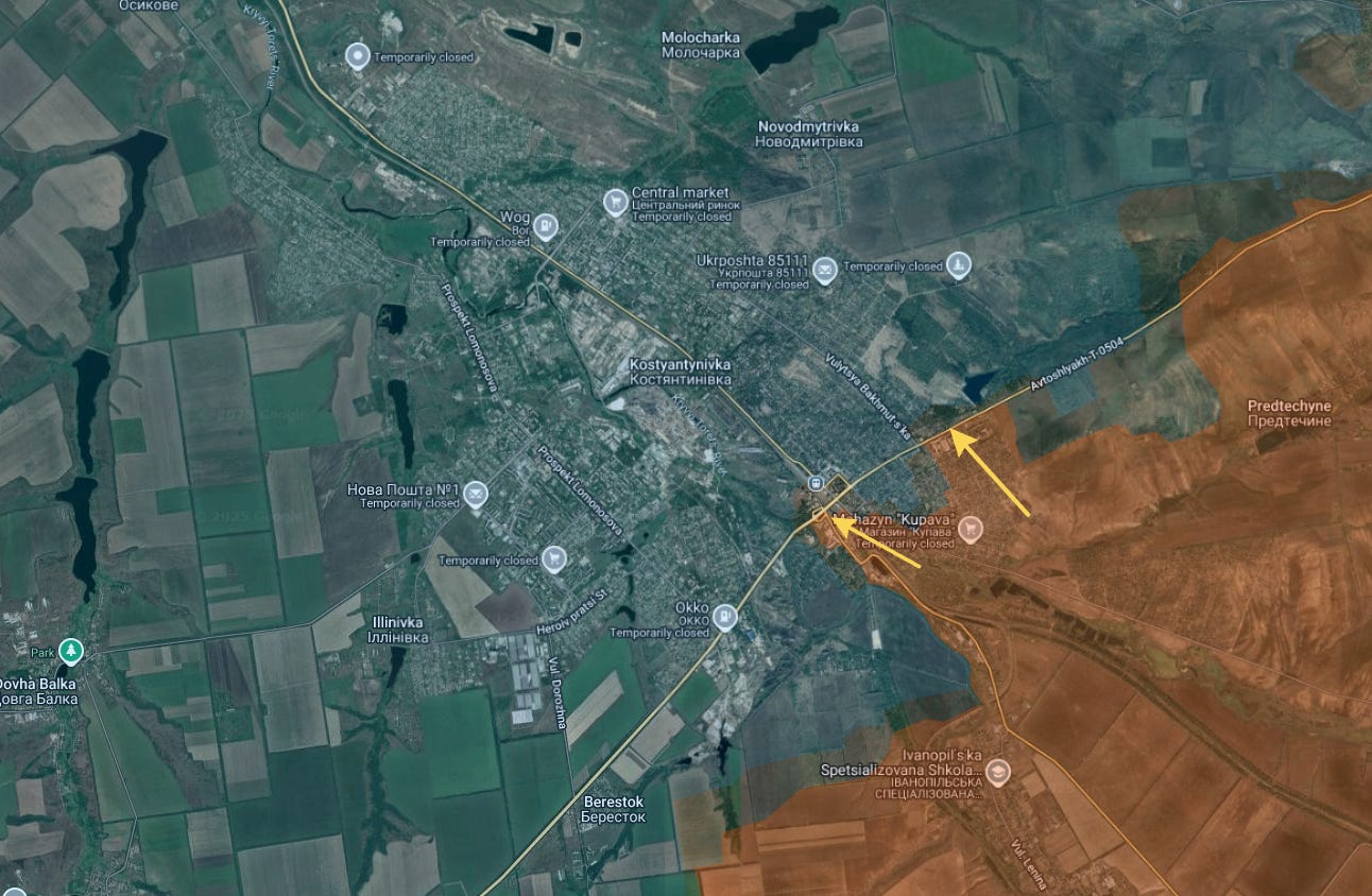 Now pro-Ukrainian channels report that Russia is activating the Konstantinovka front after it had remained somewhat dormant for the duration of the Pokrovsk-Mirnograd capture: