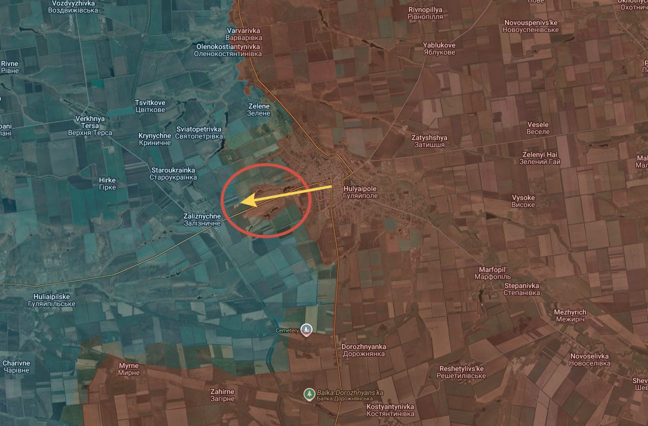 And yes, owing to that shortage, Russian forces have already stormed out guns-blazing from western Gulyaipole into the fields toward the next objective of Zalizhnyche:
