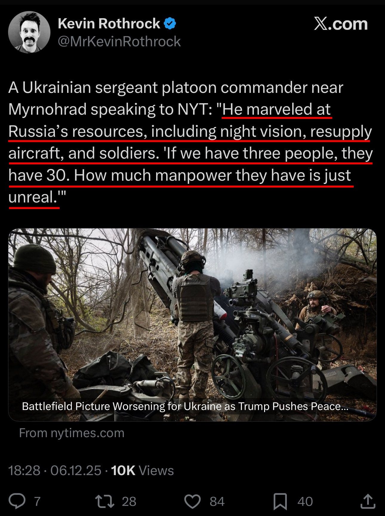Next, NYT quotes a Ukrainian platoon commander as he ‘marvels’ at Russia’s many resource advantages: