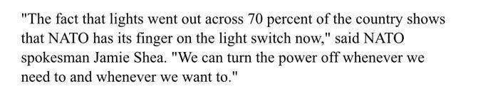 While the West continues to decry these attacks, few seem to recall NATO’s attitude toward strikes on the Serbian energy grid in the 90s:
