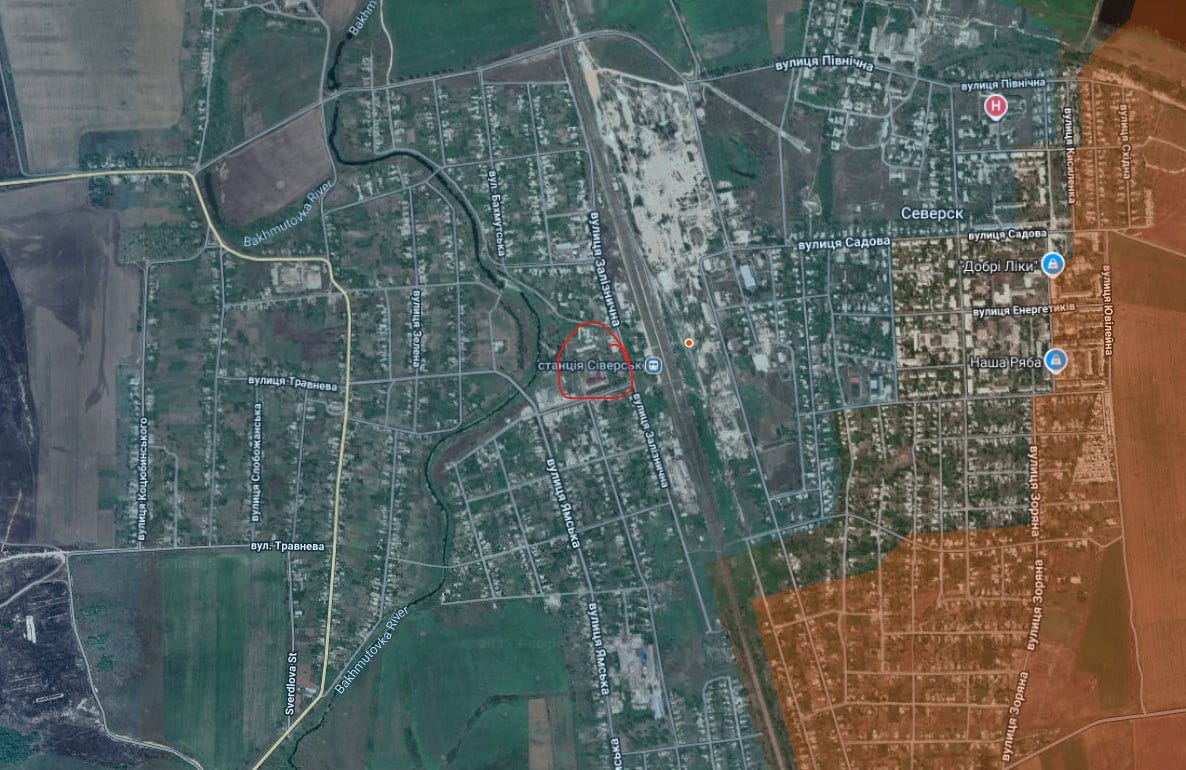 Next, Seversk has taken a turn for the worse for the AFU, with Russian forces having been geolocated planting a flag in the city center earlier today: