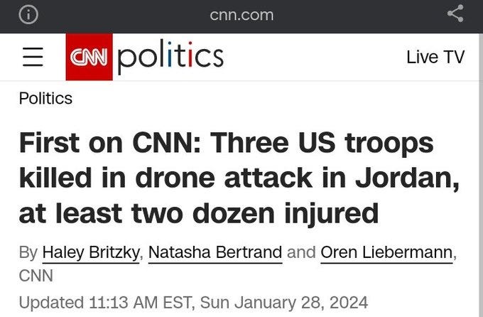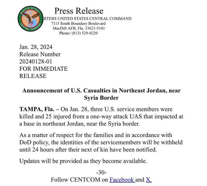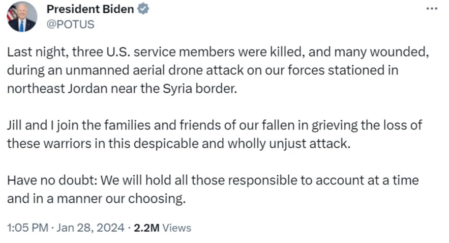 SITREP 1/28/24: US Troops Suffer Fatalities in Strikes as Escalation Grows