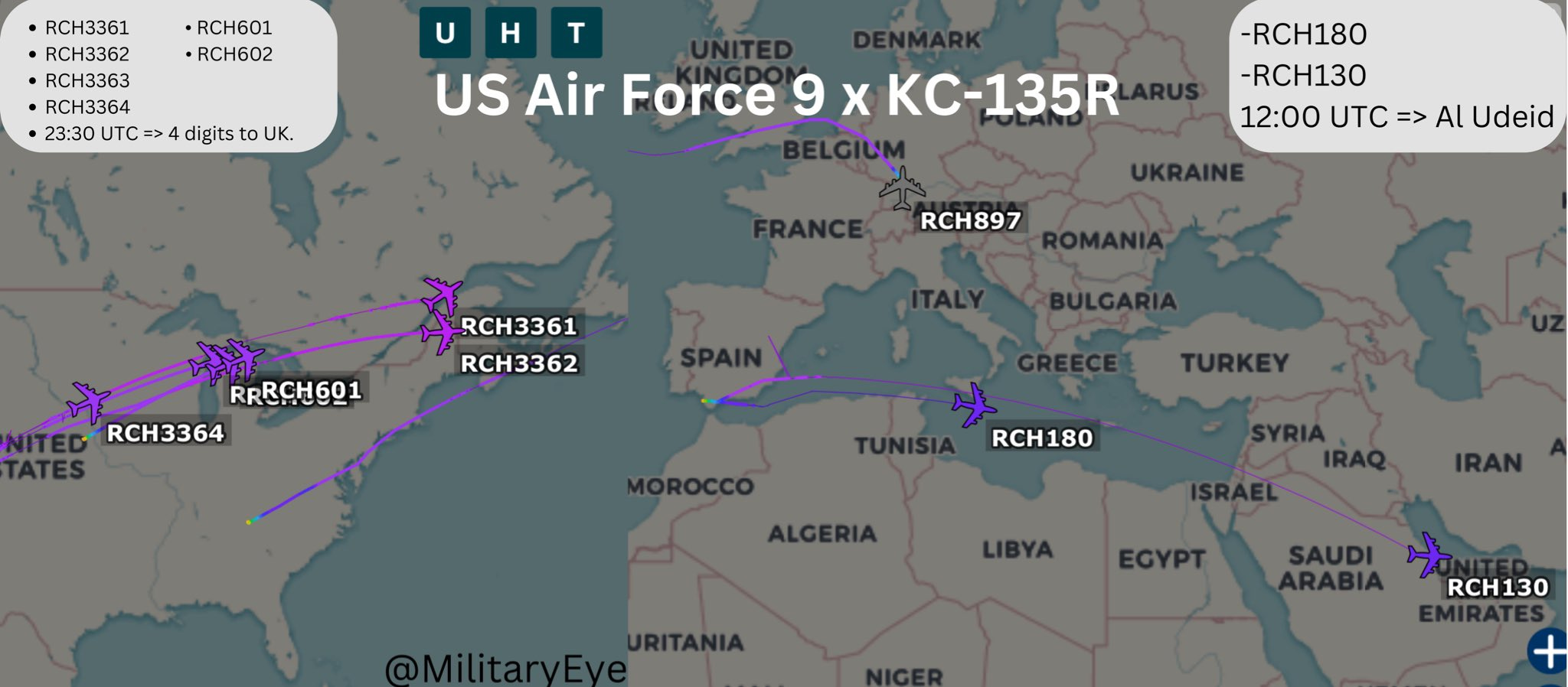 At least 6 U.S. Air Force KC-135 Aerial-Refueling Tankers, most from March Air Reserve Base in Southern California, are heading Northeast across the United States and preparing to Transit the Atlantic towards the U.K. and Europe. I wonder what kind of Aircraft they are Refueling?