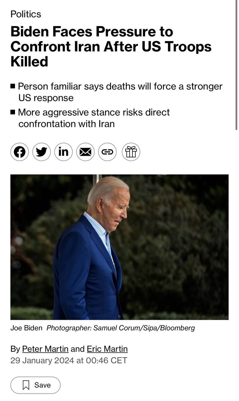 2. If Biden escalates and orders major strikes on Iran itself as Lindsey Graham and others are now cheerleading for, it could lead to an escalatory cascade that would shut down the entire region by engulfing it in flames, crashing the world economy to new levels, which would be a massive shock to any establishment re-election chances this year.