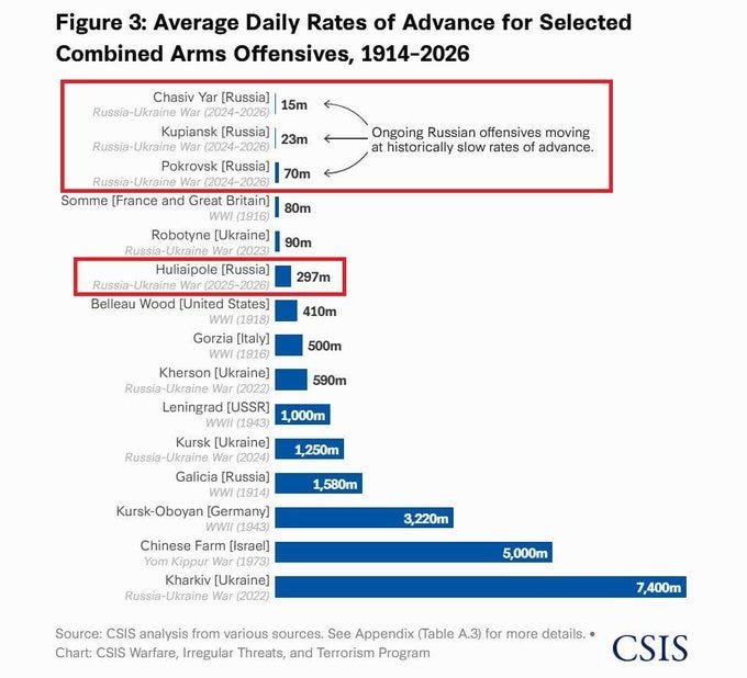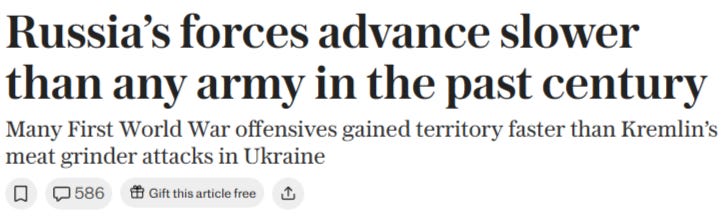 Western publications are now even mocking Russia as having the slowest advance in hte history of warfare: