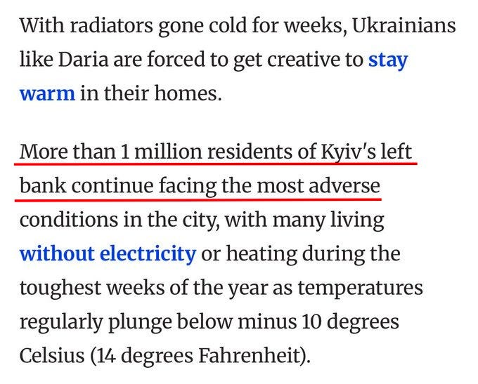 Lastly, beyond the mere political posturing, there is the actual genuinely real humanitarian concern. Does Russia really want to freeze Kievan civilians in what is said to be coming -30°C temperatures?