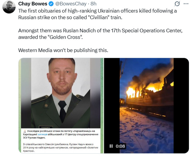 Others report a large-scale uptick in Russian strikes on Ukrainian logistics all over the country, which included a “civilian train” that happened to be carrying military members on board: