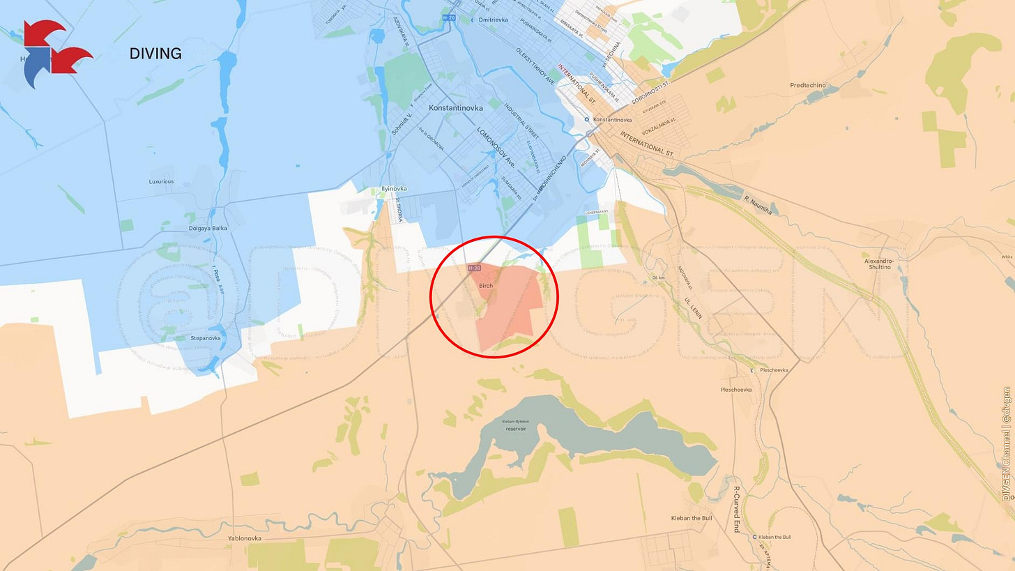 Further north on the Konstantinovka line, Russian forces captured either half or all of Berestok at the southern tip, depending on source: