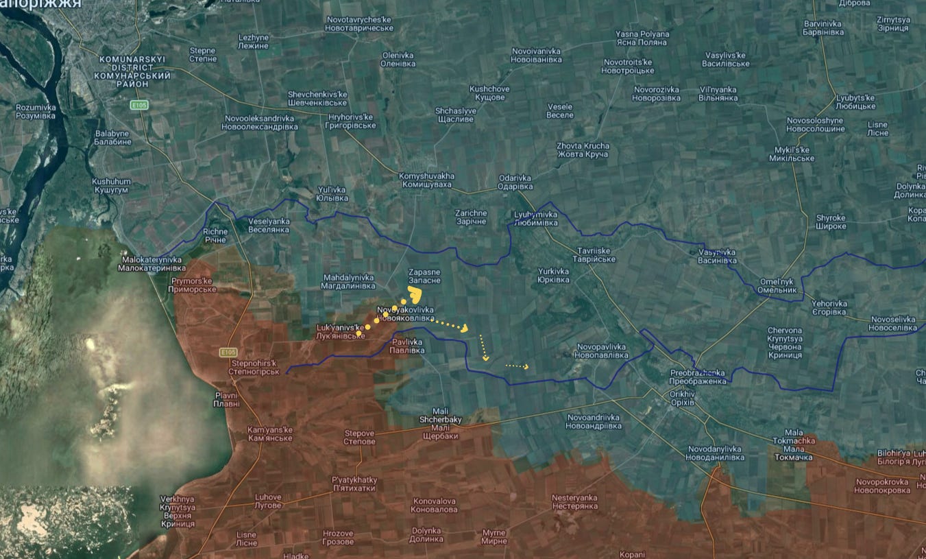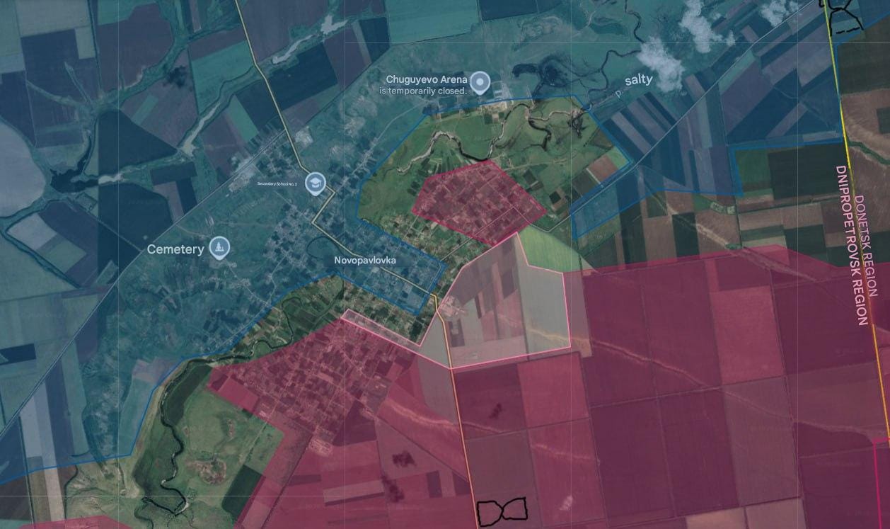 Just northeast of there, Russian forces have advanced further into Novopavlovka, entering the town center according to some reports: