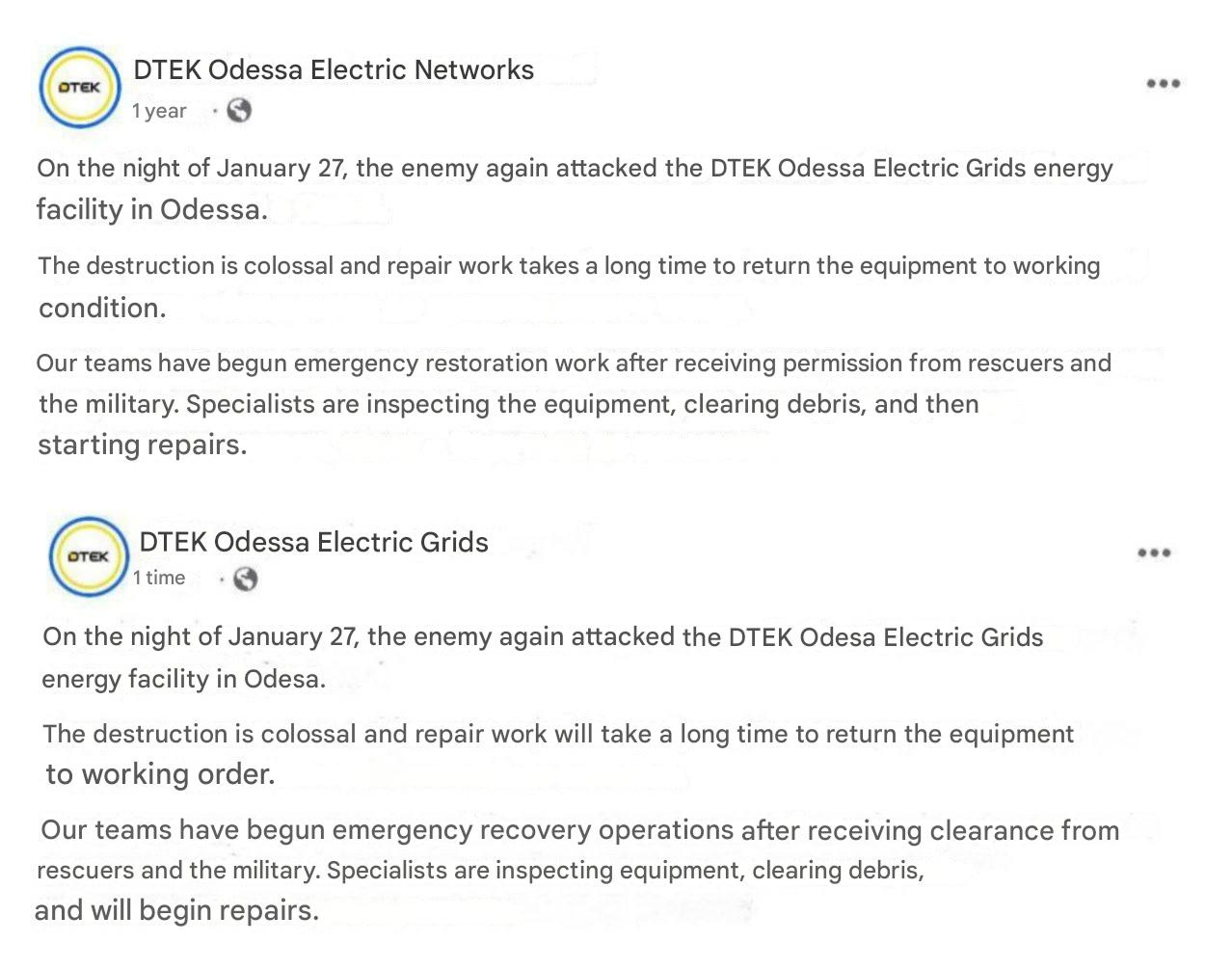 While Ukraine’s main power corp DTEK writes about major Russian strikes to Odessa’s grid just a couple days ago: