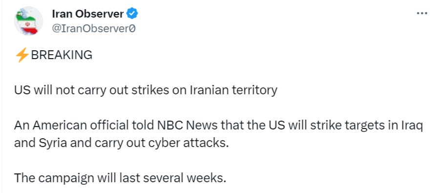 So Iran fucked around... and now we are finding out that the USA was all like, "Iran, can we please drop one bomb on an empty old chicken coop?" And Iran was all like, "No." And then the USA was all like, "OK, sorry for asking." And then Biden holds his hands up near his face for like 5 minutes for no reason.