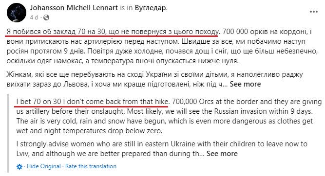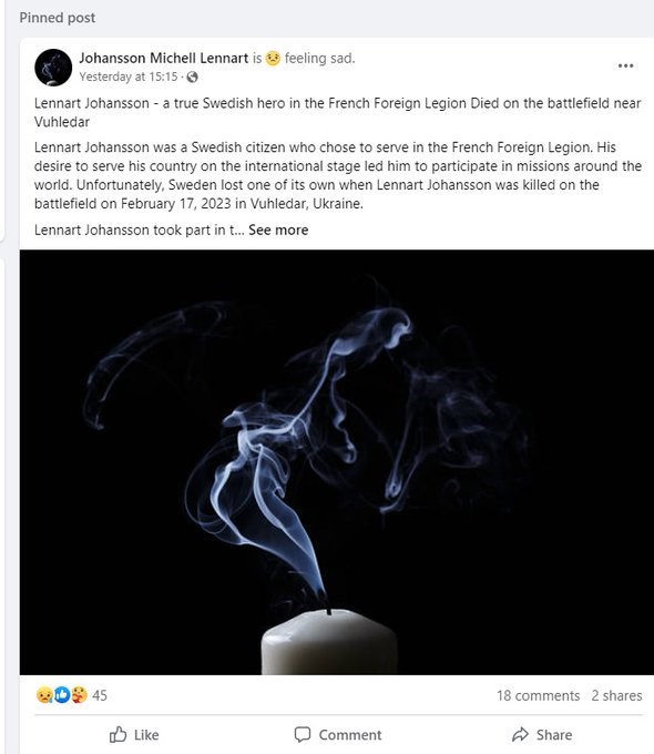 Speaking of tragic losses, a Swedish mercenary made this post only days ago from his front of Ugledar, saying, “I bet 70% to 30% I don’t come back from [this mission]”.