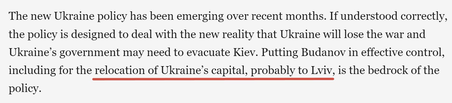And speaking of that, on the issue of the Zaluzhny dismissal, some recent articles have begun to cite plans to eventually relocate the Ukrainian ‘government-in-exile’ to Lvov, as I had long spoken about.