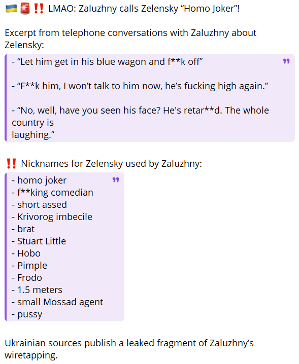 This was followed by alleged leaks of a Zaluzhny telephone call, where he reportedly savages Zelensky with a slew of colorful epithets: