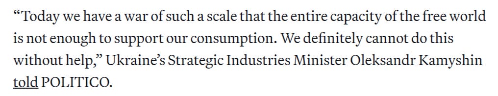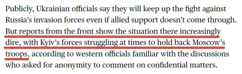 The common theme with both is that Ukraine has too few ammunition not merely to go on assault or “win”, but even to defend and hold back Russia’s troops: