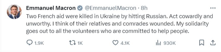 On that note, there is again increased talk of mercenaries everywhere. As Ukraine runs out of men, NATO hawks hatch their plans for a desperate last-bell save, as well as pump their disrobed soldiers into the country to stem the losses. Not only have recent Russian reports mentioned a lot of ‘German chatter’ in intercepted comms in Kupyansk, but more and more foreigners have been eliminated in recent strikes.