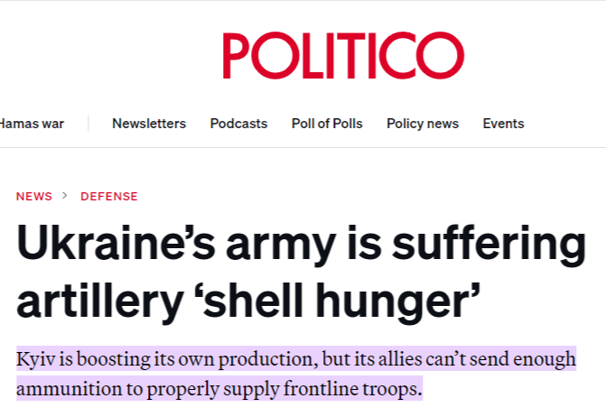 On that note, it’s not looking good for the AFU, and the given reason continues to be due to mass shell hunger and inability to fire artillery. Several new articles evocatively delve into this topic, as well as other revealing matters. One from Politico: