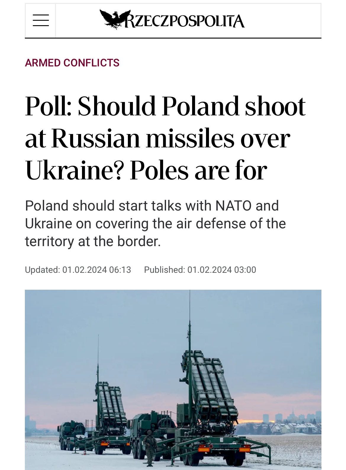 The article discusses the possibility of Poland using its air defense to protect Ukrainian airspace up to a depth of 50km under the guise of concerns for Russian missiles crashing in Poland—despite the fact that it was already determined that the largest such incident was a Ukrainian falseflag.