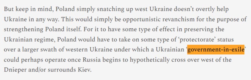 But most interesting is what’s at the bottom of the article. Polish Brigadier General Stanislav Kozey—if I’m reading it correctly through the spotty auto-translation—appears to suggest that the Western bloc should basically annex some of western Ukraine under the auspices of this ‘air umbrella’: