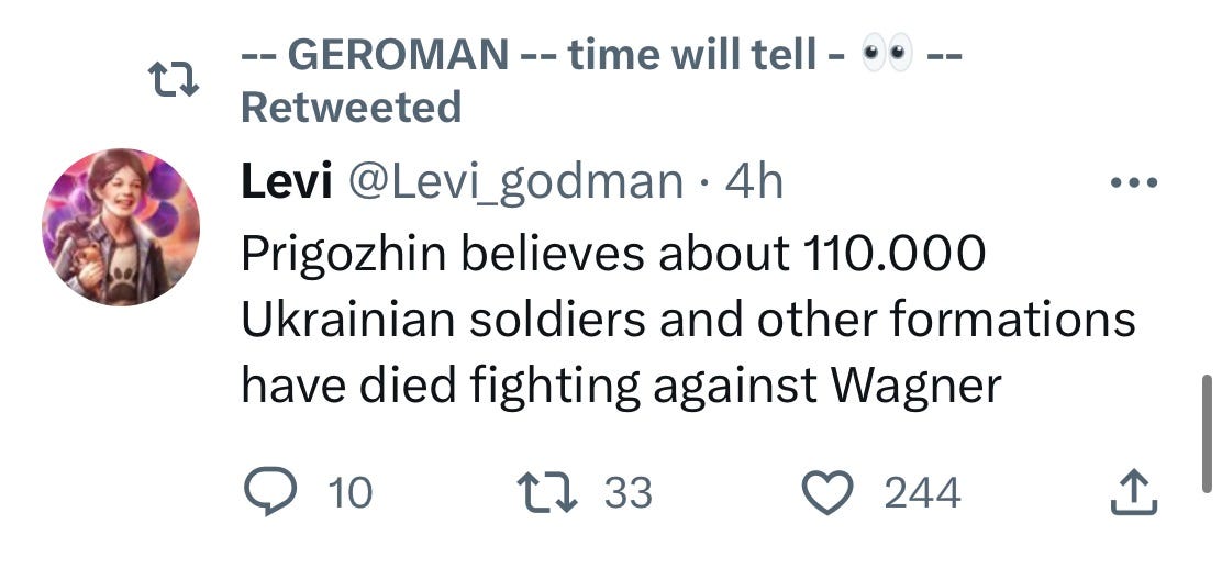 But one must recall statements like this from a reputable Russian telegram channel linked to Wagner (Reverse Side Of The Medal):