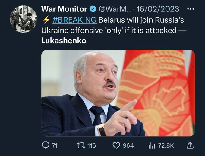 No, the only conceivable reason the AFU would strong-arm Belarus into entering the conflict is if it was part of a well-detailed and coordinated Western intel operation (read: trap) meant to vastly escalate the conflict. The most likely vector of escalation would be to force the entry of Belarusian forces into Ukraine to use that as raison d'être to bring Polish and/or NATO troops into the country to, in some way, assist Ukraine.
