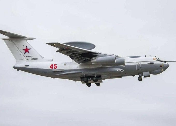 The BYPOL initiative reports that a Russian military A-50 AEW&C aircraft was blown up at Machulishchy military airfield this morning. According to BYPOL, the front and center parts of the aircraft, avionics and radar antenna were damaged.