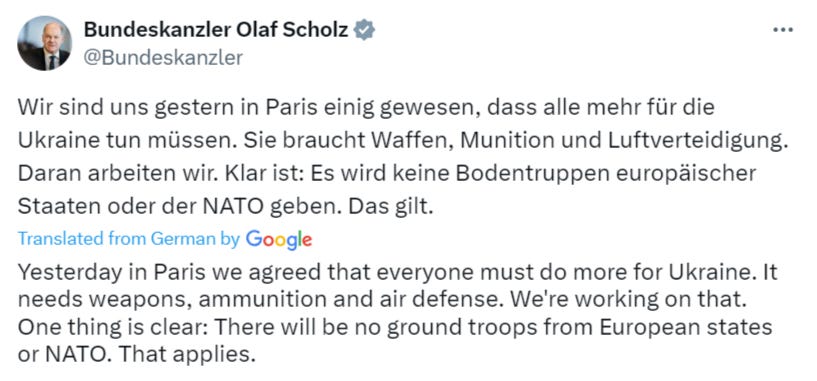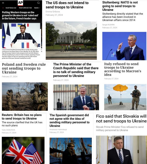 But before anyone is taken with flights of panic, it should be stated that virtually every other NATO country has already issued statements that no troops would be sent to Ukraine. This includes Spain, Italy, Greece, Finland, Germany, and now even the U.S.