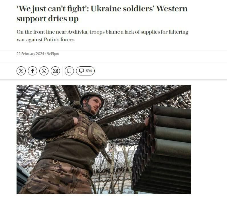 The Ukrainian Armed Forces cannot fight in the Avdiivka direction due to a lack of ammunition, soldiers complained to The Telegraph.
